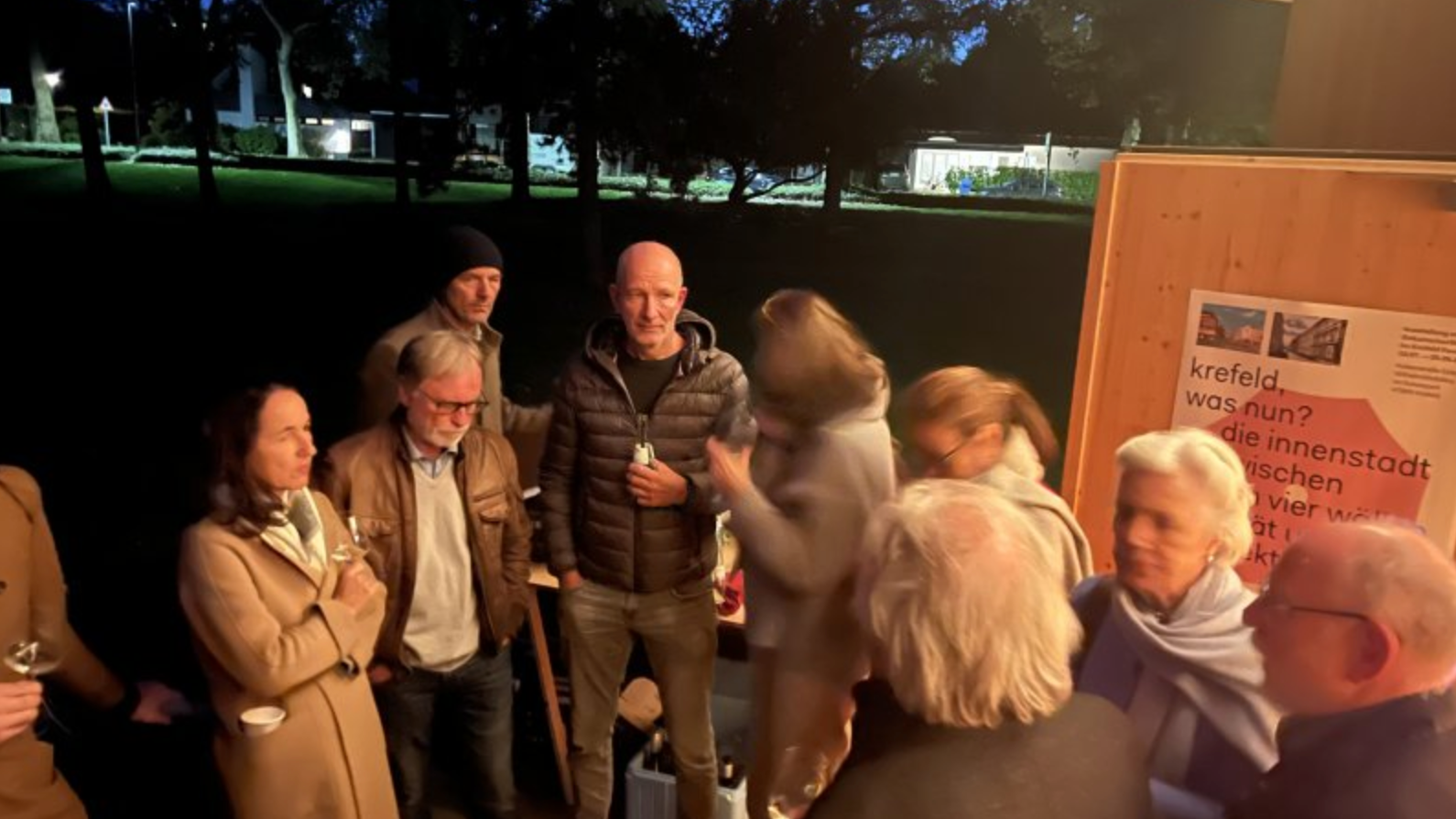 Die Ausstellung und der ca. 60-minütige Dokumentarfilm von Christiane Lange und Helge Drafz setzen sich mit dem Zustand der Krefelder Innenstadt auseinander. Dabei hatten wir die Möglichkeit, uns einen Überblick über die Anregungen dieses Projektes zu verschaffen. Christiane Lange, Vorsitzende von Projekt MIK e.V., gab eine interessante Einführung in das Ausstellungsprojekt gab. Bei einem Imbiss und Getränken bestand anschließend Gelegenheit, sich über die vorgestellten Ideen auszutauschen und den Abend in gemütlicher Runde ausklingen zu lassen.
