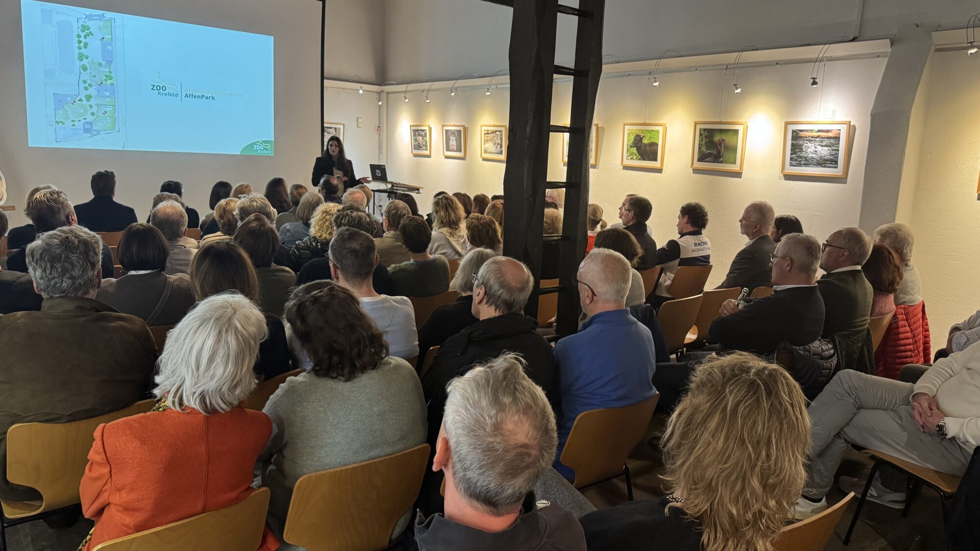 Im Anschluss an die Mitgliederversammlung präsentierte Frau Dr. Markowski das Bau- und Entwicklungskonzept des neuen Menschaffenhauses im Zoo Krefeld. Das umfangreiche Projekt ist in mehrere Bauabschnitte unterteilt und soll schrittweise bis zum Jahr 2030 umgesetzt werden. Bereits heute sind deutliche Fortschritte erkennbar, die es ermöglichen, den wissenschaftlichen Forschungsauftrag des Zoos weiter zu stärken.