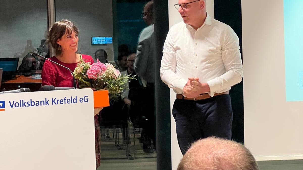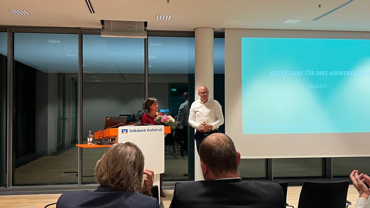 Claire Neidhardt nahm das Publikum mit auf eine Reise durch die vergangenen Jahre und zeigte, wie sich Krefeld verändert und weiterentwickelt hat. Gleichzeitig gab sie einen Ausblick auf die kommenden Themen und Projekte, die das Stadtbild prägen werden.